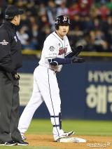 오재일 '2루타 치고 자축의 박수'[포토]