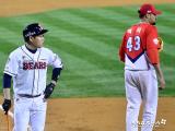 김민식 '최주환 어디 가'[포토]