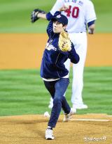 니퍼트 '1차전 승리 느낌으로'[포토]