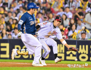 서호철 ‘사구에 맞은 후 출루’[포토]