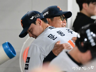 양상문 투수코치 ‘문동주 포옹에 미소’[포토]
