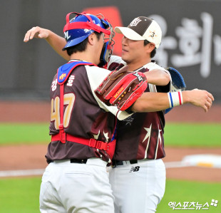 포옹하는 강민호와 우규민[포토]