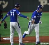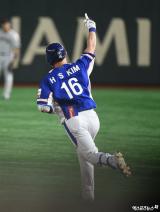 김현수 '홈런에 세리머니가 빠지면 안되지'[포토]