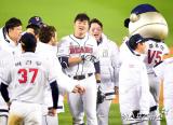 '끝내기' 오재일 '니퍼트와 하이파이브'[포토]