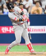 정의윤 '혀 빼꼼 내밀며 좌전안타'[포토]