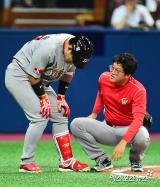 김강민-이진석 '공은 누구 글러브로?'[포토]