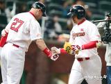 최정 '멀티 홈런 날리고 로맥과 하이파이브'[포토]