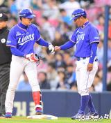 김상수 '우전안타 날리고 하이파이브'[포토]