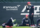 나성범 '김범수-조상우와 이야기 나누며'[포토]