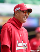 어뢰배트 살펴보는 이숭용 감독[포토]
