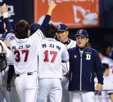 두산 '한국시리즈 최초 두 경기 연속 끝내기 승리'[포토]