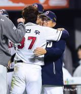 김태형 감독 '박건우 안아보자'[포토]