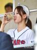 여배우 김정민, 시구 집중하다 배꼽 노출