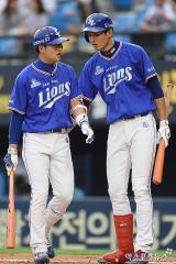 김상수-구자욱 '훈남들의 대화'[포토]