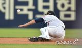 오재일 '공도 놓치고 스타일도 구겨지고'[포토]
