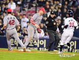 최정 '한국시리즈 첫 타석은 헛스윙 삼진'[포토]