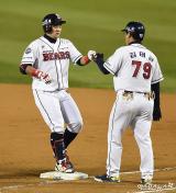 최주환 '이번에는 홈런대신 우중간 안타'[포토]
