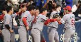 김태훈 '동료들 환영 받으며 더그아웃으로'[포토]