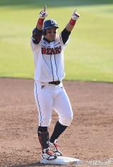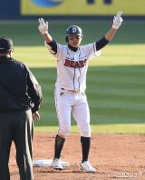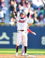 정수빈 '2루타 치고 양팔 번쩍'[포토]