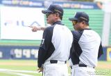 이강철 코치와 이야기 나누는 김태형 감독[포토]