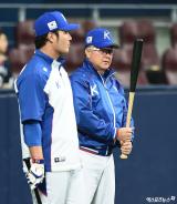 대화나누는 김경문 감독과 최일언 코치[포토]