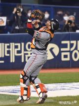 박상언 '김재환 아웃이야'[포토]