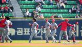 이강철 코치 '선수들과 하이파이브하며'[포토]