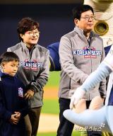 김덕근-조영선 부부 '뜻깊은 시구'[포토]