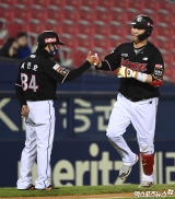 홈런 친 박병호 맞이하는 KT 선수들[포토]