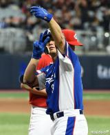 김재환 '2타점 적시타 셀카 세리머니'[포토]