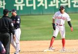 허문회 감독 '르위키 글러브좀 봐주세요'[포토]