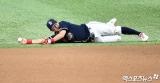 최주환 '몸으로 막긴 했는데'[포토]