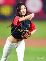 [엑's HD] 가수 유리 '배꼽 드러내고 시구'