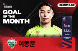 '환상 발리슛' 이동준, 2-3월 K리그 '안심을 마시다 동원샘물 이달의 골' 수상