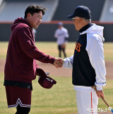 김경문 감독에게 달려가 인사하는 키움 이용규 플레잉코치[포토]