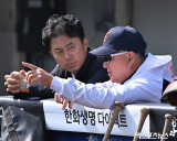 대화 나누는 손혁 단장과 김경문 감독[포토]