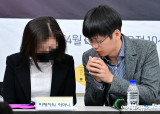 이용학 대표 고소 기자회견 '김영민 센터장과 대화나누는 피해자 어머니'[포토]
