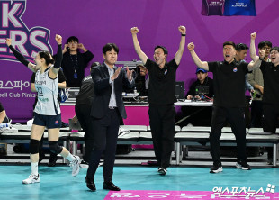 기뻐하는 도로공사 선수단[포토]