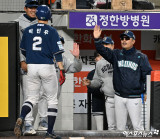 이호준 감독 ‘박민우와 하이파이브’[포토]