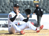 보쉴리 '타구 피해 마운드에 눕'[포토]