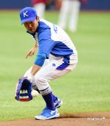 김경문 감독 '오랜만에 포수 글러브를 끼고'[포토]
