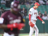 노경은 '공 1개로 푸이그 처리'[포토]