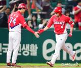 '스리런' 안치홍 '줄을 서시오~'[포토]