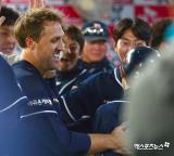 린드블럼 '정수빈 바라보며 웃음'[포토]