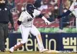 정수빈 '잠실 담장 넘겼어요'[포토]
