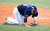 그라운드에 엎드린 김동주 '부상은 안되는데'[포토]