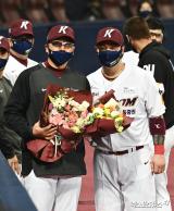 이용규 '요키시 시즌 첫승 축하해'[포토]