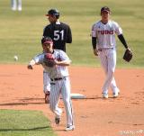 박재욱 '홈 잡고 1루로 병살'[포토]