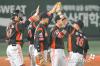 김사율-강민호 '멋진 볼배합으로 1점차 지켰어'[포토]