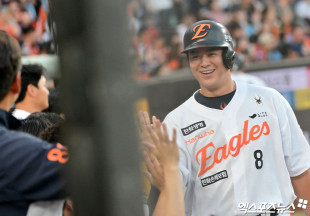채은성 ‘추승우 코치와 하이파이브’[포토]